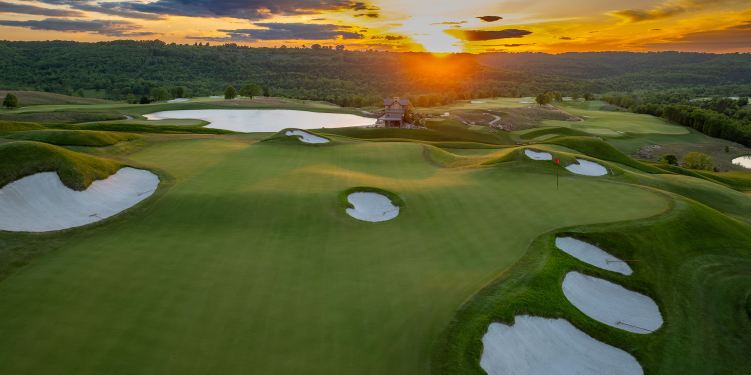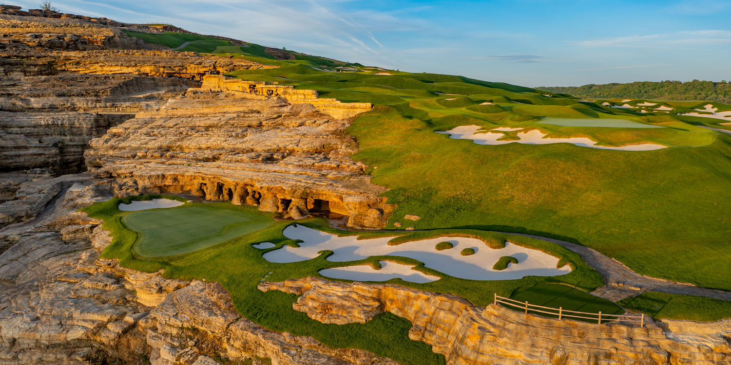 The most extraordinary par-3 course on Earth! Created by Bass Pro Shops founder Johnny Morris and his son John Paul, Cliffhangers dangles on a steep hillside adjacent to Payne’s Valley with 18 holes ranging from 60 to 170 yards. The adventure course features dramatic elevation changes, breathtaking views, and holes meticulously carved into the region's iconic limestone cliffs and flowing creeks.